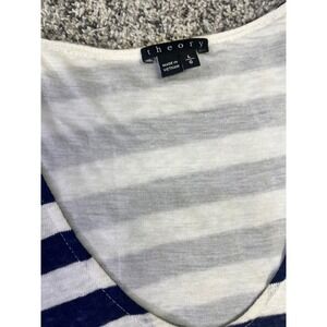 Theory Womens Linen Navy Coastal Striped T Shirt Dress Sz L Short Sleeve Summer