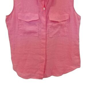 Theory Womens Linen Top Tank Medium Bright Pink Pockets Button Up Hidden Placket