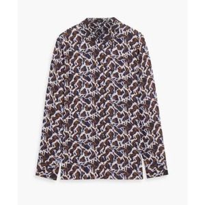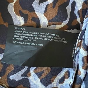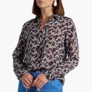 Theory Women's Navy Blue Brown Printed Silk-chiffon Shirt, size S