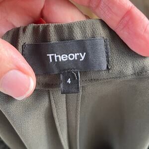 Theory Women's Olive Green Cropped Crepe Trousers Size 4