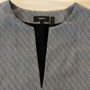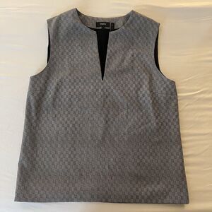 Theory Women’s Optical Wool Split Neck Sleeveless Top Black Ivory Large