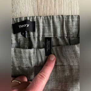 Theory Women’s Organic Linen Basic Pull-On Pants Melange Eco Sharkskin - Size 8