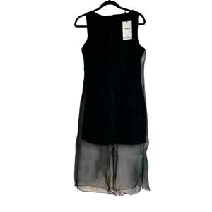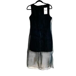 Theory Women's Organza Layer Mini Shift Dress Sleeveless Black Size 4 NWT