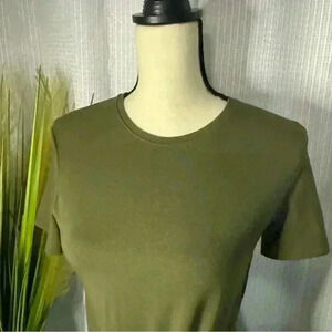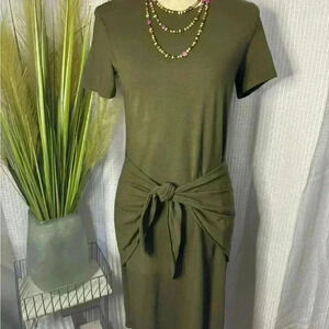 Theory Women’s P Small Knotted Tie Front Olive Green Above Knee T Shirt Dress