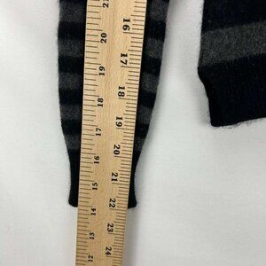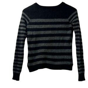 Theory Women's Petite Black Gray Striped 100% Cashmere Crew Neck Sweater