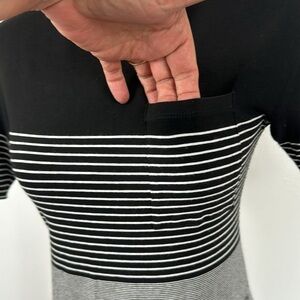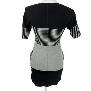 Theory Women's S Pelloa Engineered Tee Dress B&W Stripe Pockets EUC
