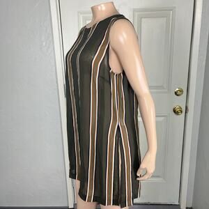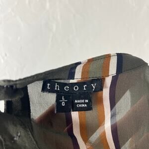 Theory Womens Shirt L Pinga Silk Designer Tunic Stripe Sheer Sleeveless B4-28