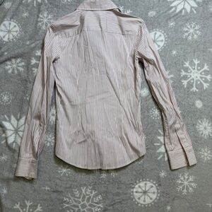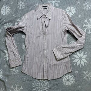 Theory Womens Shirt Small Striped Button-Up Cinched Waist Office Chic Pink White