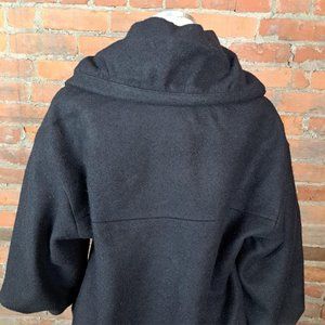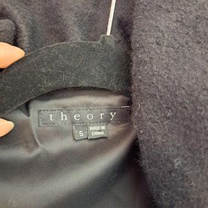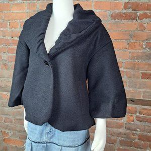 Theory Womens Short Coat Puffy Sleeves Collar Black Big Collar Wool Size S