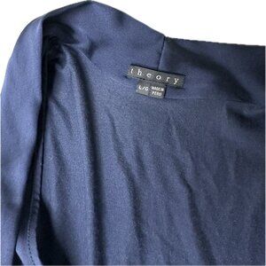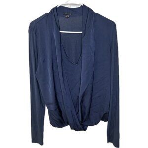 Theory Women’s Silk Draped Front Blouse Navy Blue Long Sleeve L