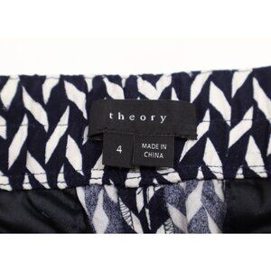 Theory Women's Silk Pull-On Geometric Printed Pants Navy Sz 4
