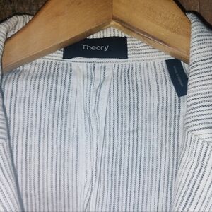 Theory Women's Size 10 Linworth B Linen Blend Striped Blazer Jacket