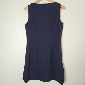 Theory Women's Sleeveless Lined Sheath Dress Navy Edge Trim Size 6 Knee Length