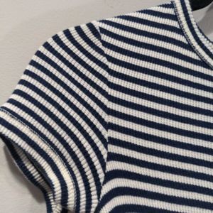Theory Womens Striped Onissa Ribbed Mini Dress Size S Navy Blue White 90s Y2K