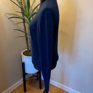 Condition: Gently pre-owned with very light piling. Please see the provided video, note that the color appears lighter in the video, but it is a true navy blue.