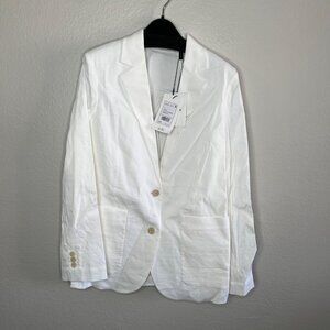New with tag Theory Womens White Minimalist Linen Blend Blazer Size 4 Eco Crunch Wash