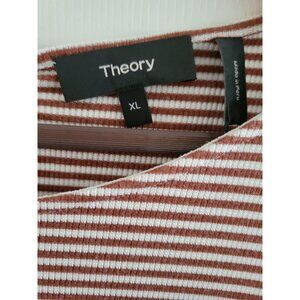 Theory Womens brown white Lowell striped button back knit top size XL New Preppy
