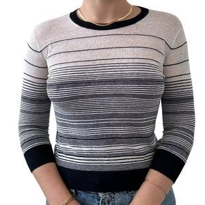 Theory Womens Navy Blue White Striped Linen Blend Sheer Sweater Petite Small