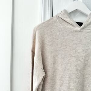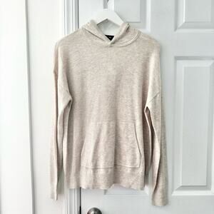 Size large from Theory. Style name Hooded sweater Aria knit. Color oatmeal beige. Wool blend pullover sweater. Relaxed slightly oversized fit. Preowned in good condition with no stains or tears.