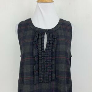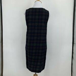 Theory Wool Blend Shift Dress Women Size 8 Dark Plaid Keyhole Sleeveless Stretch