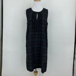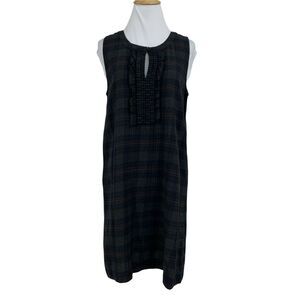 THEORY WOOL BLEND SHIFT DRESS WOMEN SIZE 8 DARK PLAID KEYHOLE SLEEVELESS STRETCH