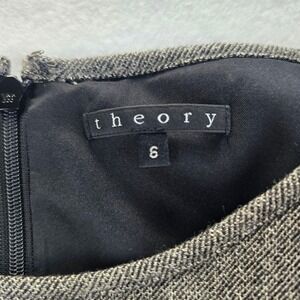 Keywords: Theory dress, sleeveless dress, herringbone dress, work dress, career dress, fitted dress, gray dress, size 6, professional dress, classic dress, business casual, office attire, contemporary fashion