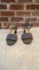 Theory Wool Block Heel Open Toe Sandals. Adjustable ankle strap closure with silver buckle.