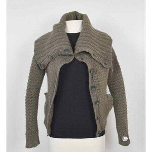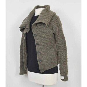Theory Wool Cashmere Tootsie New Tweed Olive Green Thick Knit Cardigan Sweater S