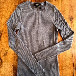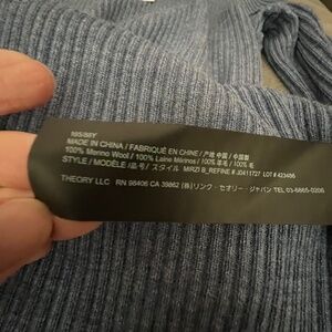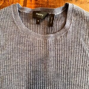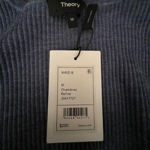 NWT Theory 100% wool crew neck sweater. Is a very fine, lightweight wool and beautiful blue chambray/denim color. Is a size medium, but runs small. Is ribbed and has stretch.