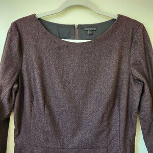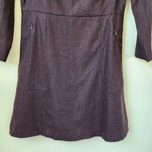 In good condition. Things to note are scuffs to hardware as shown and missing hook at top of zipper. Dark purple in color. Lined.