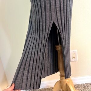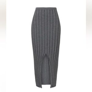 Theory Wool Evian Wide Rib Midi Skirt preppy Old money quiet luxury front slit M