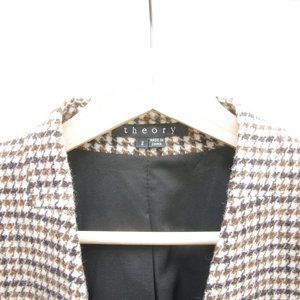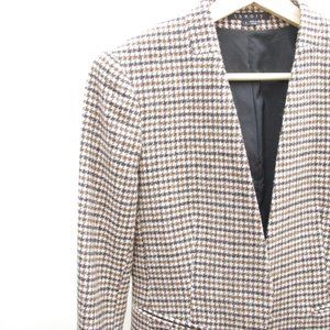 Theory Wool Houndstooth Open Blazer Jacket Tan