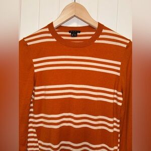 Theory Wool Tommie Stripe Orange and White Crewneck Sweater Size Medium