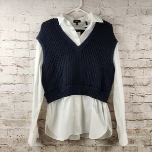 Theory Woven Combo Vest Shirt in Navy & White Size Large NWT Sweater