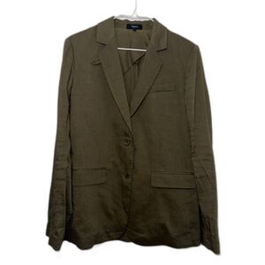 Theory Wylia Crunch Wash Linen Blend Blazer - Olive Green 4. This item is pre-owned in excellent condition. Some creasing at the elbows.