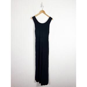Theory X Back Jumpsuit Size 10 Black Crepe Cross Back Wide Leg Side Stripe