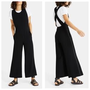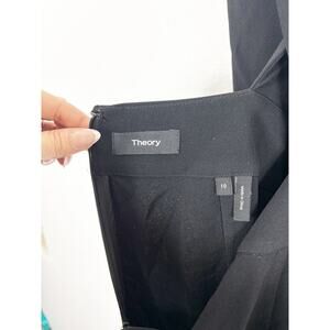 $375 Theory X Back Jumpsuit Size 10 Black Crepe Cross Back Wide Leg Side Stripe