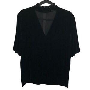 Theory X Revolve Slit Collar V-Neck Velvet Blouse