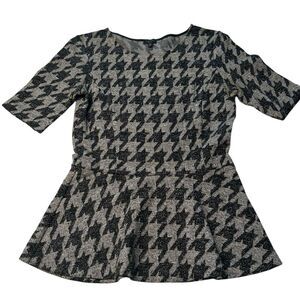 Theory XS Petite Houndstooth Peplum Blouse Metallic Gray Black Academia 2000s