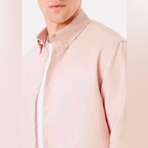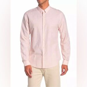Theory Zack Ramiro Linen-Cotton Woven Shirt Pink Tint S