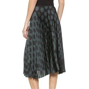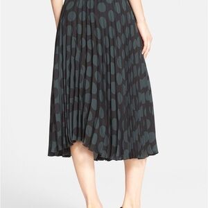 Theory Zeyn skirt in pleated, polka-dot chiffon. Green and black