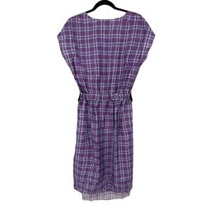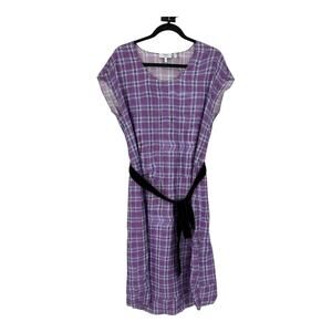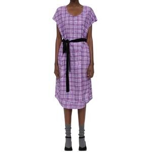 Theory belted silk viscose check midi dress purple size Medium M F2209