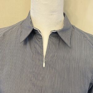 Theory blue white vertical stripe long sleeve zip front blouse Size S EUC