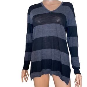 Women’s striped sweater, black and gray long sleeve top, V-neck pullover, oversized casual sweater, lightweight knit top, relaxed fit striped shirt, fall winter layering piece, cozy lounge wear top, horizontal stripe tunic, casual everyday sweater.