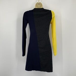 Theory colorblock sweaterdress dress wool blend gray navy blue yellow X-Small XS