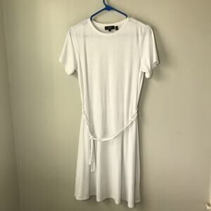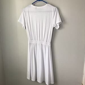 Theory cotton modal white tshirt dress drawstring elastic waist knee length M