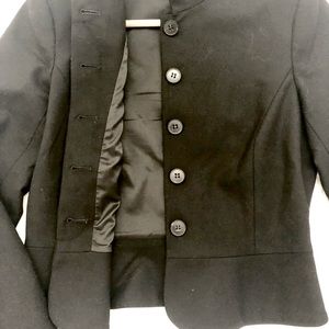 Cropped lightweight wool jacket by Theory. Fully lined, hidden button close front placket.