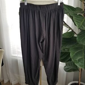 Unknown style, parachute like pants. loose fit, soft, flowy fabric, that tapers to the knee with button snap on each leg of pant. pockets on each side.
