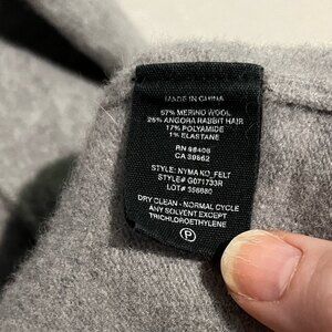 Super soft and warm! Merino Wool and Rabbit Hair blend. The bottom hem does tend to roll up, some gentle direction will correct this. In great condition! No rips, stains, or tears.