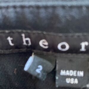 Theory Modele high waisted black pants with ankle zippers on the inside of the leg. Back leg seam for a very flattering fit. Side zip closing. Cotton polyamide Elastane blend. Feels very substantial and stretchy. Measurements are approximate: